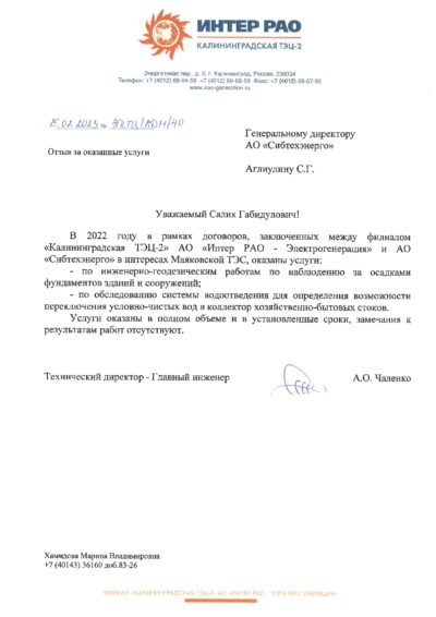 АО "Сибтехэнерго" получило отзыв о своей работе на Маяковской ТЭС