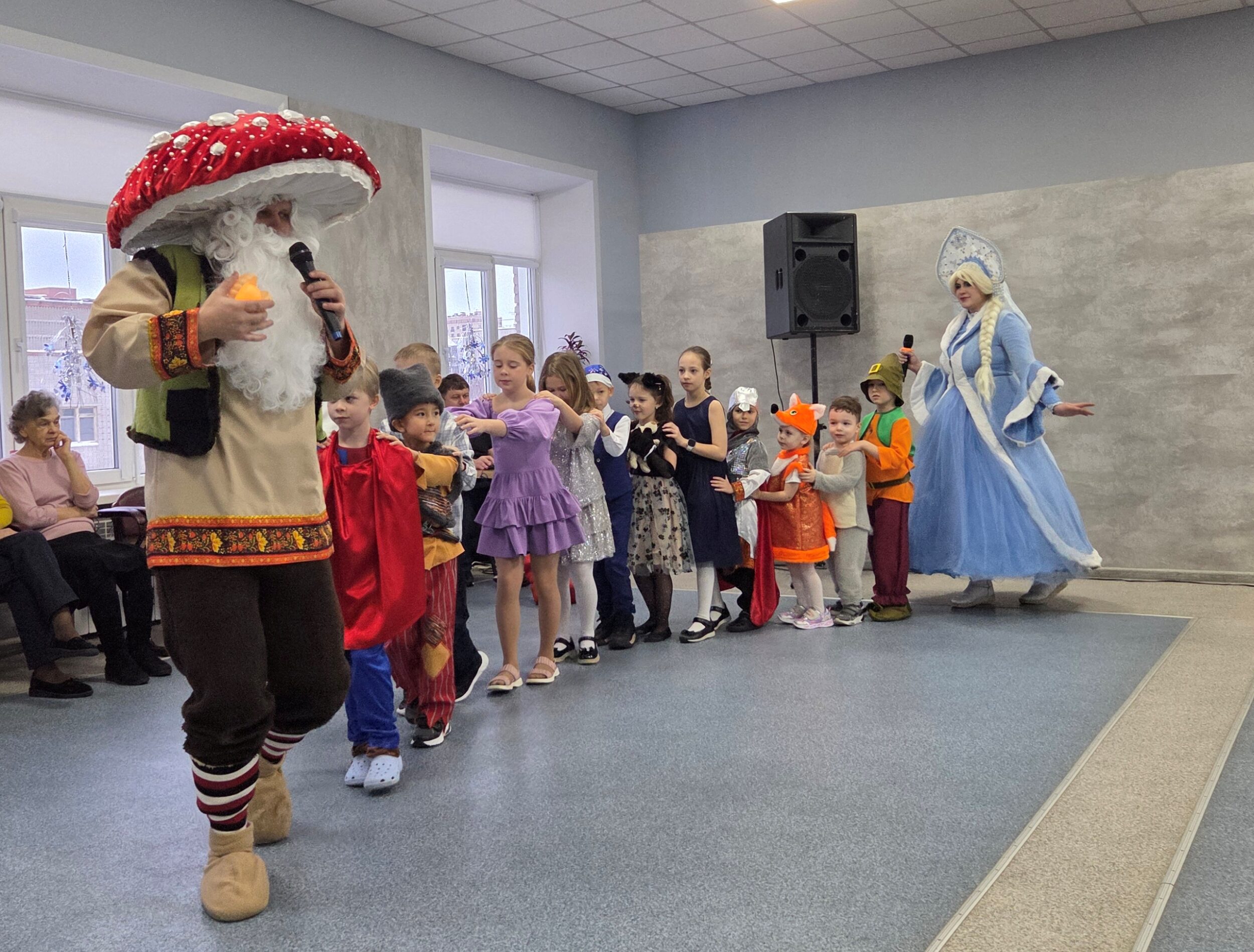 По сюжету, перед самым Новым годом Внучка Снегурочка случайно превратила Деда Мороза… в ледяную статую! Однако юные зрители не растерялись: они с энтузиазмом выполняли задания Лесовичка, побывали в гостях у Водяного и сумели уговорить Бабу Ягу сварить спасительное волшебное зелье. Их усилия увенчались успехом: чары пали и Дед Мороз снова ожил! В знак благодарности он вручил каждому юному герою сладкий подарок за смелость, смекалку и командный дух.