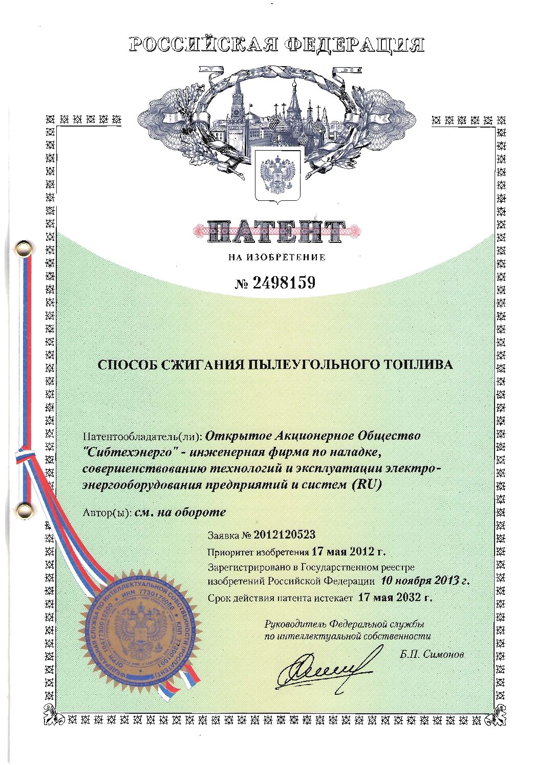 Изобретение позволяет снизить затраты на обеспечение устойчивости факельного сжигания угольной пыли, снизить требования к техническому составу сжигаемых углей и расширить диапазон регулирования тепловой мощности котла без применения высокореакционного топлива для целей подсветки факела.