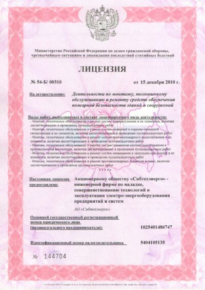 Лицензия МЧС на выполнение работ по монтажу, техническому обслуживанию и ремонту средств обеспечения пожарной безопасности зданий и сооружений