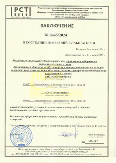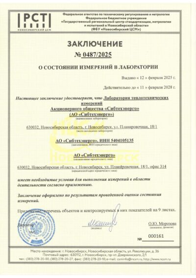Свидетельства и заключения лабораторий АО «Сибтехэнерго»
